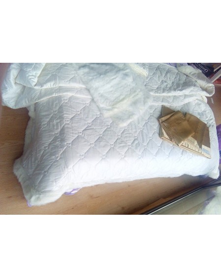 Copriletto trapuntato matrimoniale " DELIZIA "Confezionato a mano con tessuto in raso di puro cotone tinto in filo. Copriletto è realizzato in raso di puro cotone con la trapuntatura a rombi e ricami a forma di cuore.Il prodotto è stato abbellito con l'applicazione terminale di bordo in ecopelliccia ed è impresiozito con l'applicazione di starss del logo GFF.Gli angoli sono arrotondati (come da immagine).Tessuto sopraRaso di puro cotone 100%Tessuto sotto Cotone 100% Imbottitura in morbida fibra anallergica da 100 gr/mq.Dimensioni cm 270 x 270+ 2 FEDERE in ECOPELLICCIAper cuscino decorativo 40 x 40 cmConfezione: Busta trasparente con chiusura a cernieraIdea regaloProdotto da GF FerrariMade in italy