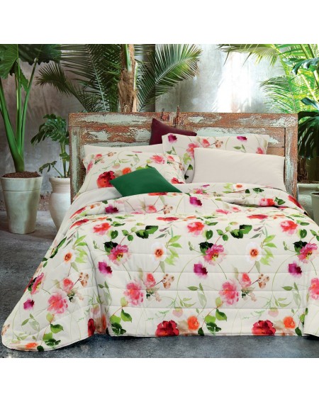 Copriletto trapuntato matrimoniale " PRIMAVERA " Copriletto è realizzato in microfibra - materiale pratico e resistente che si asciuga facilmente e non è necessario stirarlo. Il prodotto è abbellito con una stampa floreale. La trapuntattura e come da immagine. Tessuto sopra Microfibra 100% Tessuto sotto Microfibra 100% Imbottitura in morbida fibra anallergica da 100 gr/mq. Dimensioni   cm  265 x 265 Confezione: Busta trasparente Prodotto da GF Ferrari Made in italy
