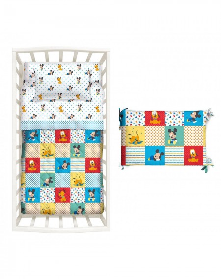 Completo lenzuola per lettino Mickey Patch Lenzuolo sopra cm 110x180 Lenzuolo sotto con angoli cm 60x130 Federa cm 40x55