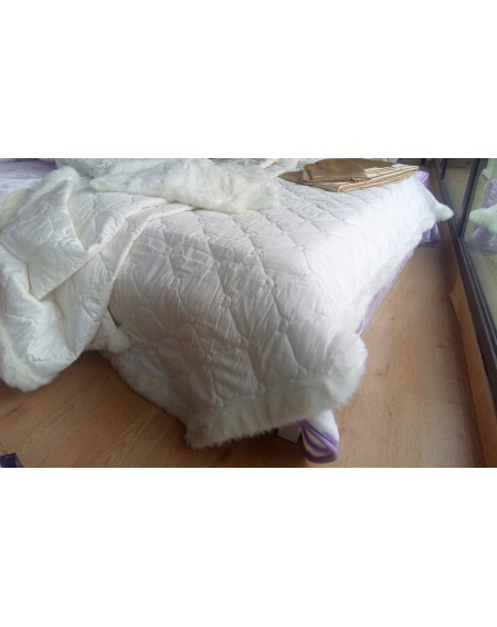 Copriletto trapuntato matrimoniale " DELIZIA "Confezionato a mano con tessuto in raso di puro cotone tinto in filo. Copriletto è realizzato in raso di puro cotone con la trapuntatura a rombi e ricami a forma di cuore.Il prodotto è stato abbellito con l'applicazione terminale di bordo in ecopelliccia ed è impresiozito con l'applicazione di starss del logo GFF.Gli angoli sono arrotondati (come da immagine).Tessuto sopraRaso di puro cotone 100%Tessuto sotto Cotone 100% Imbottitura in morbida fibra anallergica da 100 gr/mq.Dimensioni cm 270 x 270+ 2 FEDERE in ECOPELLICCIAper cuscino decorativo 40 x 40 cmConfezione: Busta trasparente con chiusura a cernieraIdea regaloProdotto da GF FerrariMade in italy
