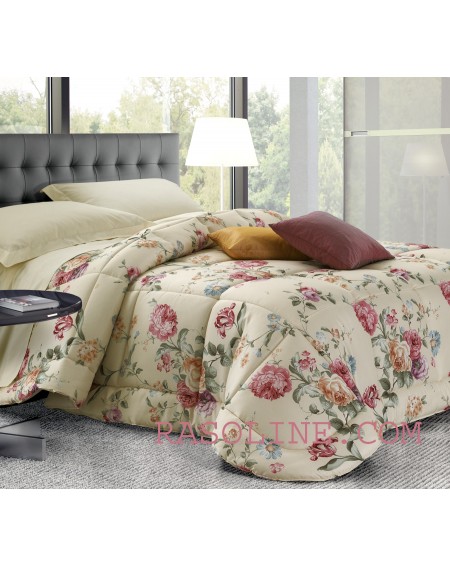 Trapunta invernale matrimoniale Double face " FERRARUCCIA " Trapunta è realizzata in morbida microfibra mano pesca (materiale pratico e resistente che si asciuga facilmente e non è necessario stirarlo). Il prodotto è double face, da un lato è stampato con una splendida fantasia floreale e dall'altro in colore avorio (come da foto). Il prodotto è confezionato con bordo alto, gli angoli leggermente arrotondati e la trapuntatura a rombi. Tessuto sopra Microfibra 100% Tessuto sotto Microfibra 100% Imbottitura in morbida fibra anallergica da 350 gr/mq. Dimensioni cm 260 x 260 Confezione: Busta trasparente e tnt Idea regalo Prodotto da GF Ferrari Made in italy