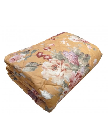 Copriletto trapuntato matrimoniale " PRIMAVERA " Copriletto è realizzato in microfibra - materiale pratico e resistente che si asciuga facilmente e non è necessario stirarlo. Il prodotto è abbellito con una stampa floreale. La trapuntattura e come da immagine. Tessuto sopra Microfibra 100% Tessuto sotto Microfibra 100% Imbottitura in morbida fibra anallergica da 100 gr/mq. Dimensioni cm 265 x 265 Confezione: Busta trasparente Prodotto da GF Ferrari Made in italy