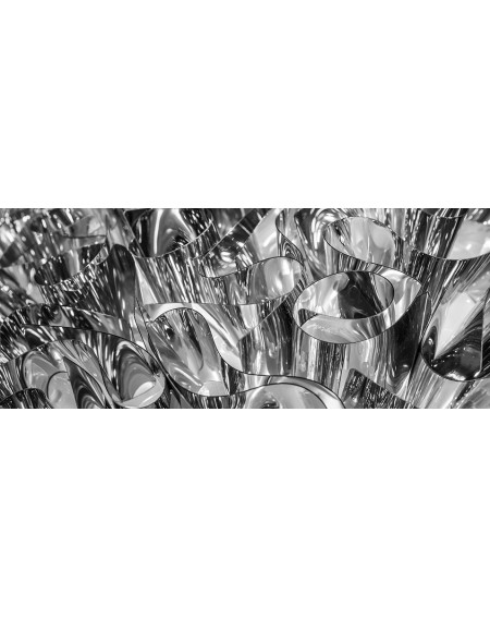 Pregio e lucentezza sono i valori che le collezioni Veli Gold, Silver e Copper aggiungono a ogni interior grazie a Goldflex® , Steelflex® e Copperflex® i tecnopolimeri metallizzati brevettati da Slamp. Traendo ispirazione dalla morbidezza dei tessuti e delle stoffe, il designer Adriano Rachele ha trasposto il concetto sulla collezione (3 plafoniere/applique e 2 sospensioni – tutte con attacco magnetico) progettando un sistema di montaggio che viene eseguito a mano tramite incastri e senza punti di giuntura a vista. Il risultato è una collezione glamour, sofisticata ed esclusiva che si trasforma da fonte di luce a elemento decorativo, garantendo luminosità e riflessi nobili ad ambienti domestici e grandi spazi.Veli SilverDimensioni: ø 53 cm x h20 cm design byAdriano Rachele Illuminazione: 2 X 20W - E27 FLUORESCENT Colore: Silver Materiale GOLDFLEX® / STEELFLEX® / COPPERFLEX® Peso: Netto: kg 1.25 - Lordo: kg 3 Imballo: 54 x 54 x h22 cm Certificazioni: