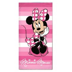 Drap de plage ou de bain MINNIE - Disney. La serviette de plage est faite de tissu éponge pur coton super doux et super absorbant d'un côté et de chenille douce de l'autre (pur coton). Le produit avec son splendide imprimé Minnie Mouse, clair et lumineux, sera un ami fidèle de chaque petite princesse, à la plage ou à la piscine ou après le bain à la maison. L'éponge de haute qualité, légère et super absorbante, conservera sa douceur et la qualité des impressions même après de nombreux lavages. Le produit garantit une excellente capacité d'absorption, mais en même temps grâce à sa légèreté également un séchage rapide.