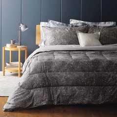Magnifique parure de lit double avec un imprimé qui recherche le charme du ciel étoilé, un produit de haute qualité et élégant, conçu pour refléter un style moderne et contemporain en tissu 100 % pur coton américain. Le produit contient le drap supérieur 240x280 cm avec imprimé étoiles et le drap inférieur 175x200 cm avec imprimé rayé, deux taies d'oreiller avec boutonnières et boutons avec imprimé étoiles double face 50x80 cm.