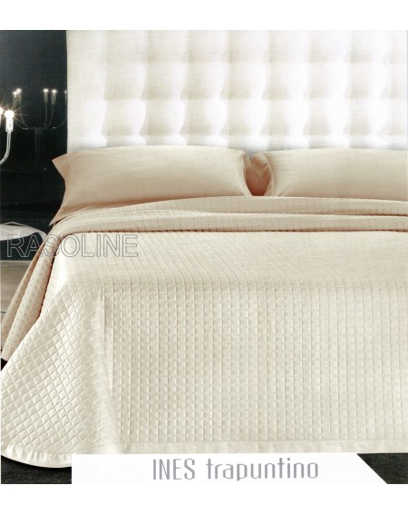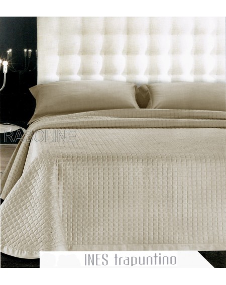 Copriletto trapuntato matrimoniale" INES "Confezionato a mano con tessuto tinto in filo.Copriletto è realizzato in raso di puro cotone di alta qualità e rifinito con bordo.Gli angoli sono arrotondati e la trapuntattura e come da immagine. Tessuto sopra Raso di puro Cotone 100%. Tessuto sotto Puro cotone 100%Imbottitura in morbida fibra anallergica da 100 gr/mq.Dimensioni cm 265 x 265 Confezione: Busta trasparenteDisponibile anche completo lenzuola abbinato. Prodotto da GF FerrariMade in italy