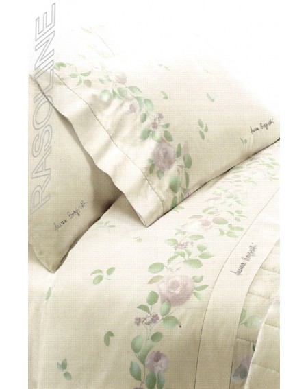 Copriletto trapuntato con la stampa floreale in Raso di puro Cotone da 110 fili al cmq Filato pettinato Imbottitura 100% morbida fibra anallergica di poliestere. Peso 100gr/mq
